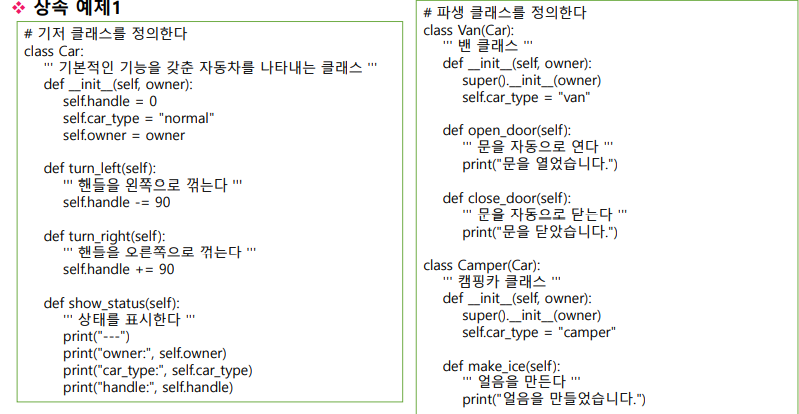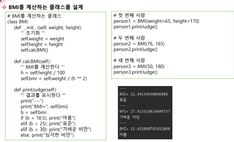 - 클래서 선언 아래 있어야하고 자신을 나타내는 self라는 인수가 반드시 있어야한다는 점 빼곤 일반 함수과 같이 사용