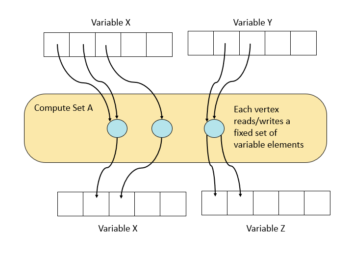 꼭짓점은 컴퓨팅 세트가 해당 작업을 세분화된 병렬 컴퓨팅 조각으로 분할하여 IPU의 많은 타일과 작업자 스레드를 사용하는 방법을 결정합니다. 각 정점은 IPU의 특정 타일에 연결됩니다.