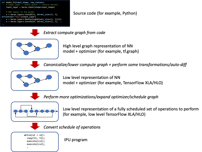일반적인 상위 수준 프레임워크에서 IPU 프로그램으로의 구현 흐름이 그림 3.12 에 나와 있습니다 .