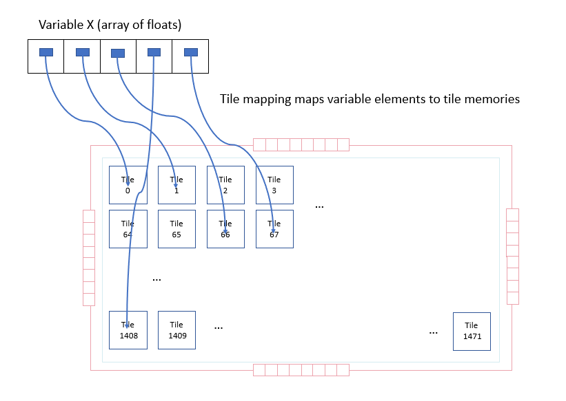 단일 변수는 여러 타일의 메모리 단위에 걸쳐 저장될 수 있습니다. 변수의 각 요소는 특정 타일에 배치되거나 "매핑"됩니다. 이를 변수의 타일 매핑 이라고 합니다.