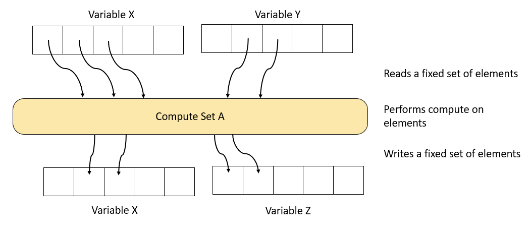 변수를 다차원 텐서로 보는 것은 IPU에서 프로그램을 실행하는 데 필요한 액세스 패턴을 구축하는 데 매우 유용합니다. 그러나 데이터 조작은 여전히 메모리의 기본 변수에서 발생합니다.