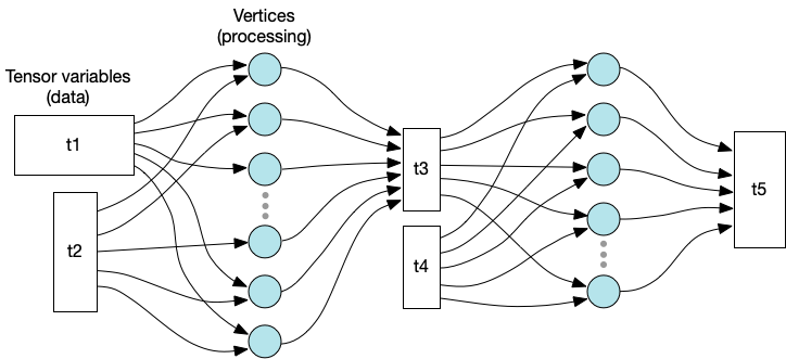 컴퓨팅 세트는 고도로 병렬화된 컴퓨팅 부분입니다. 각 컴퓨팅 세트는 컴퓨팅 작업인 여러 정점 으로 구성됩니다. 컴퓨팅 세트 내의 각 정점은 다른 정점과 병렬로 코드 조각을 실행합니다. 따라서 그림 3.4 에서 계산을 수행하고 변수를 읽고 쓰는 계산 집합은 실제로 병렬로 실행되는 정점 집합이며, 각 정점은 변수를 읽고 쓰고 계산을 수행합니다.