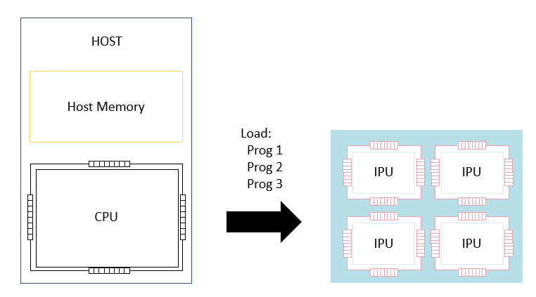 먼저, 호스트는 IPU 세트에서 실행할 프로그램 세트를 구성합니다. 그런 다음 이러한 프로그램은 바이너리로 함께 컴파일되어 IPU에 로드됩니다.