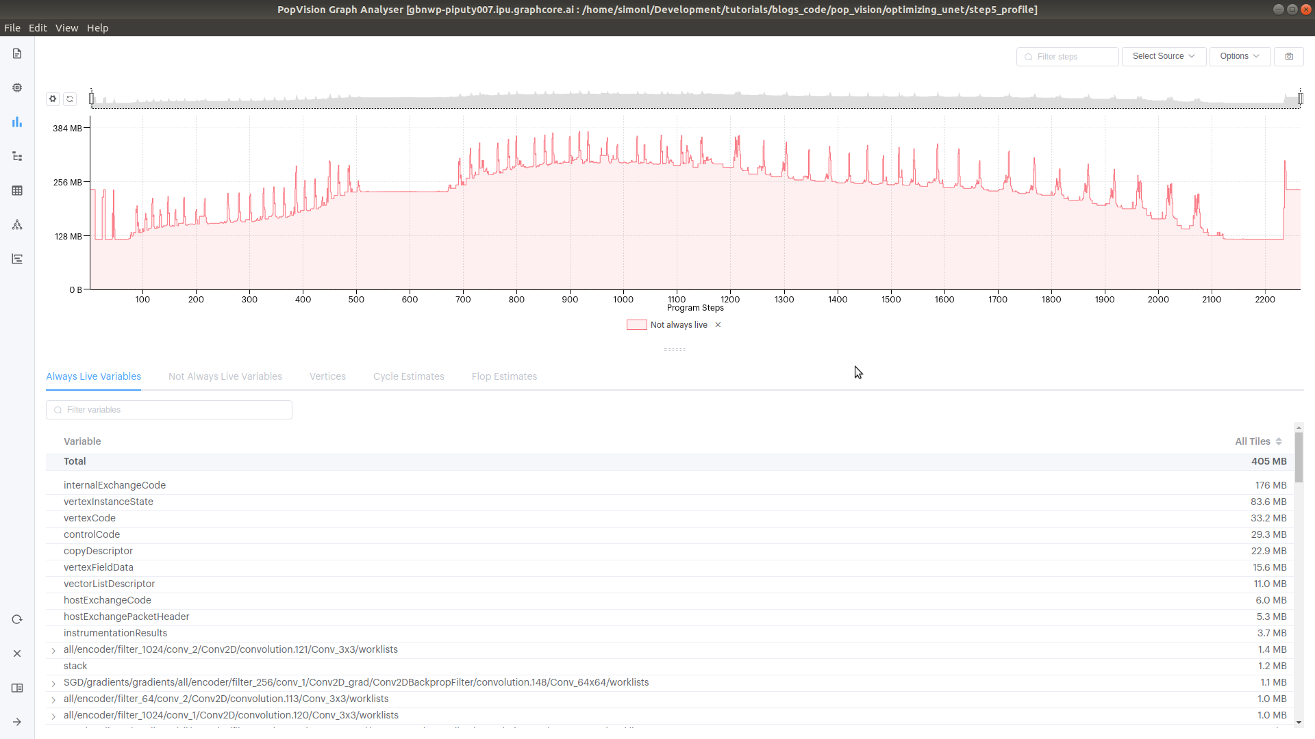 이러한 감소가 발생하더라도 타일 간의 동기화로 인해 실행을 모든 타일에 걸쳐 전역 실행으로 보는 것이 여전히 가능합니다. 예를 들어 이것은 PopVision 그래프 분석기 도구가 보여주는 보기입니다 .
