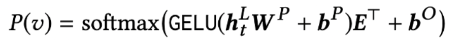 - Transformer 모델로부터 받은 final output으로부터 softmax를 통해 Mask 토큰의 확률값을 구한다.