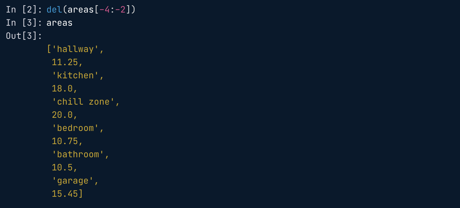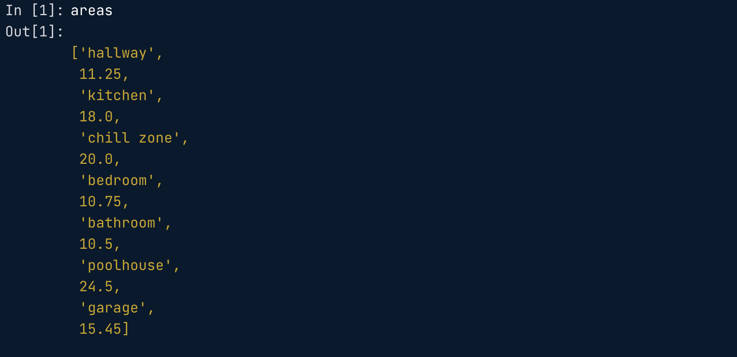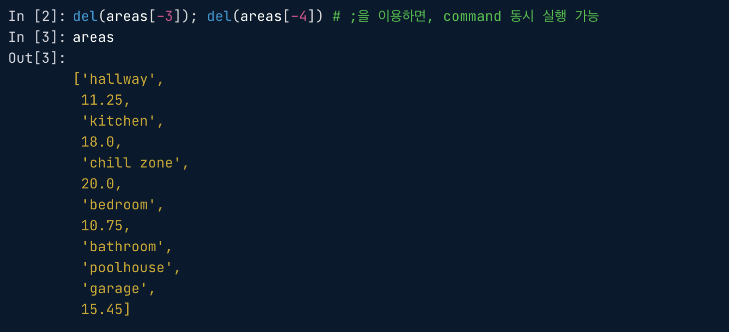 이 순서대로 실행되므로, areas[-3]이 삭제된 상태에서 다시 areas[-4]가 세어지므로, 내가 원래 기대했던 poolhouse에 대한 정보들이 아닌 bathroom 면적 수치가 삭제됨.