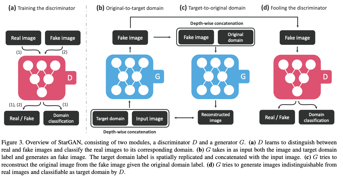 - 다양한 데이터셋을 번갈아가며 학습하며 discriminator는 모든 데이터셋에 관한 discriminative 특징들을 학습하고 generator는 모든 라벨들을 제어하는 것에 대해 학습하게됨