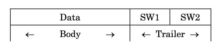 Response APDU Format은 가변 길이의 Conditional Body와 2바이트의 Mandatory Trailer로 구성된다.