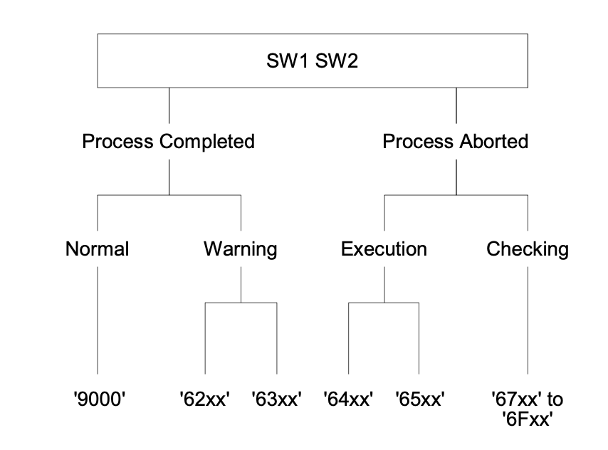 - SW1: 상태 코드의 첫 번째 바이트로, 상태의 주요 범주(정상 처리, 경고, 오류 등)를 나타낸다.