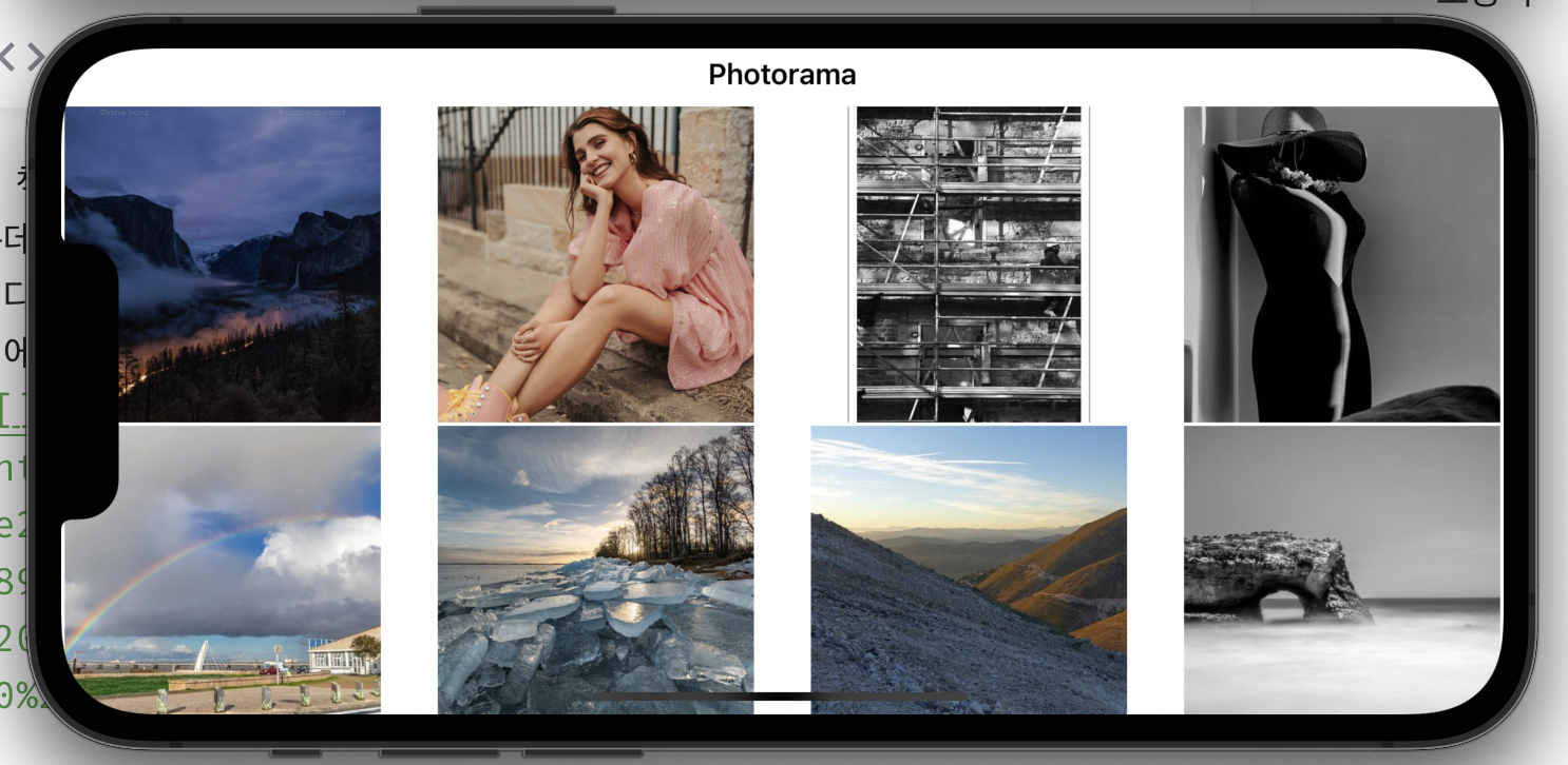 - 그리고 viewDidLoad() 메서드에서 bounds 의 변경에 따라 content area 를 다시 계산할 때, 항상 safe area inset 을 고려하도록 해줬다. 이렇게 안하면 가로모드로 넘어갔을 때 사진이 양 옆에 safe area 를 무시하고 퍼져서 이렇게 보기 싫게 된다