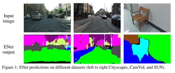 pixel-wise Segmentation in real time에서 큰 숫자의 floating point operation은 단점으로 여겨지며, 긴~ run-times로 인해 작동능력을 방해한다. 본 논문에서는 낮은 latency 연산으로 구성된 새로운 딥 뉴럴 네트워크 구조를 제안하였다. E-Net은 기존 대비 18배 이상 빠르며 75배 보다 적은 FLOPS, 79배 적은 파라미터 값을 가지고, 기존 모델에 비해 더 나은 정확도를 보이고 있다. CamVid, Cityscapes, Sun 데이터 셋에서 좋은 성능을 보였으며, 정확도와 네트워크 처리 속도 사이의 Trade-off가 존재한다. 우리는 임베디드 시스템에서 제안된 아키텍처의 성능측정을 제시하고, ENet을 더 빠르게 만들 수 있는 개선방안을 제안한다.