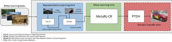 현재 본 연구실은 위와 같은 한계를 극복하기 위해 메타 강화학습 기반의 자율주행 에이전트가 학습되지 않은 UNS 상황이 발생한 것을 탐지하는 인공지능과, UNS 탐지 결과에 따른 MPC(Model Predictive Control)기반 최적 제어 신호 생성 policy망을 학습하고 실제 제어하는 메타 강화학습 알고리즘을 개발하는 것을 목표로 연구재단 과제를 진행하고 있으며, 어떠한 상황에도 인간의 개입 없이 자율주행 자동차가 모든 판단과 주행제어를 수행하는 Level5 자율주행 기술 개발을 목표를 하고 있다.