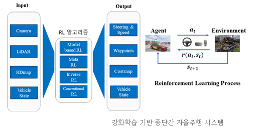본 연구실은 다양한 OOD 환경에서도 안정적인 Level5의 자율주행 자동차 개발을 목표로 Meta-강화학습 기반의 종단간 주행 방식을 연구하고 있으며, 총 5년동안 20억 규모의 연구재단 과제를 진행하고 있다.