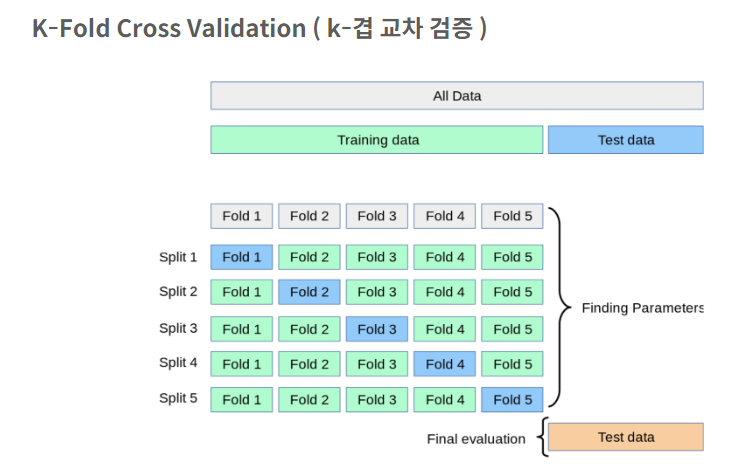 kfold = KFold(n_splits=5) #전체 데이터 셋을 5개로 분할