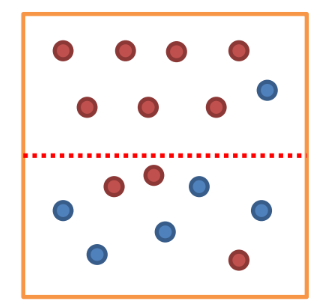 위 그림의 엔트로피를 구하면, 전체 16개(m=16) , 빨간색동그라미(범주1)=10개, 파란색(범주2)=6개