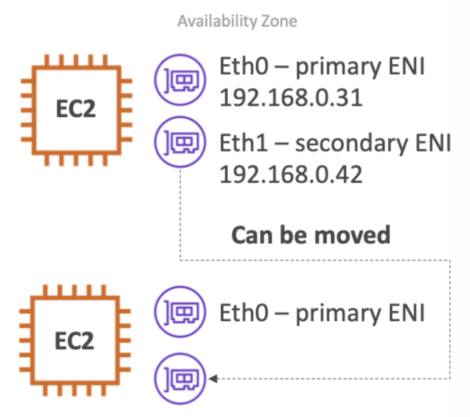 ENI는 EC2 인스턴스와 독립적으로 관리될 수 있으며, 인스턴스 간의 장애조치를 위해 필요한 경우 다른 인스턴스에 동적으로 연결할 수 있습니다.