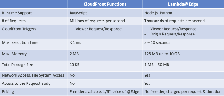 | 기능 | CloudFront Functions | Lambda@Edge |