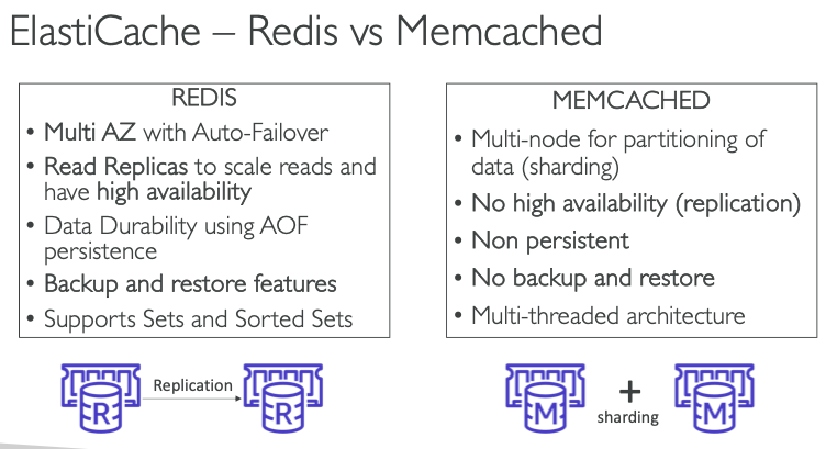 - ElastiCache is to get managed Redis or Memcached