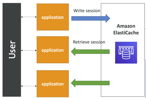 - application wrties the session data into elastiCache