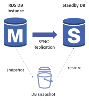 - 새 AZ에 복원: 스냅샷을 바탕으로 새 가용 영역(AZ)에 새로운 DB 인스턴스를 복원하여 대기 인스턴스로 구성합니다.