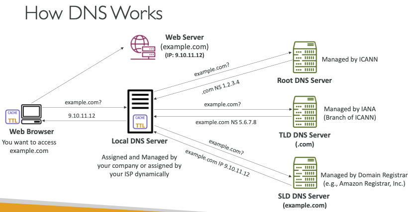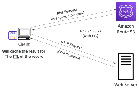 - TTL(Time-To-Live): DNS 리졸버(DNS Resolver)에 캐시될 시간(초 단위). TTL이 짧으면 변경 사항이 더 빨리 반영됨.