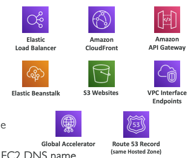 - 예: mydomain.com이나 app.mydomain.com을 blabla.amazonaws.com 같은 AWS 리소스에 연결할 수 있습니다.