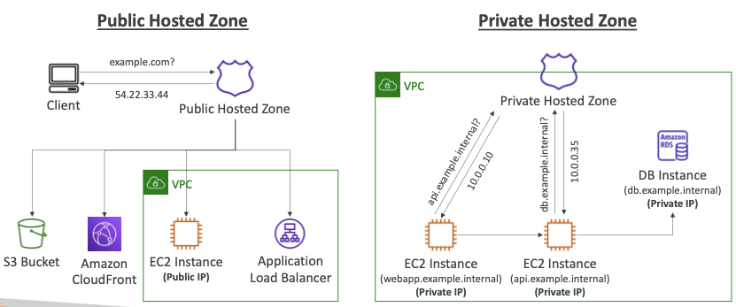 - 퍼블릭 호스티드 존은 외부(인터넷 사용자)에서 접근 가능한 웹 애플리케이션, API, 웹사이트 등의 트래픽 라우팅 설정에 주로 사용됩니다.