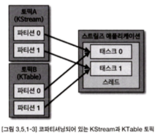 order 토픽과 address 토픽은 코파티셔닝되어 있으므로 각각 KStream과 KTable로 선언해 서 조인을 할수 있었다. 그러나 코파티셔닝되어 있지 않은 토픽을조인해야 할 때는 어떻게 해 야 할까? 코파티셔닝되지 않은 데이터를 조인하는 방법은 두 가지가 있다. 첫 번째는 리파티셔닝을 수행한 이후에 코파티셔닝 이 된 상태로 조인 처 리를 하는 것이고 두 번째는 KTable로 사 용하는 토픽을 GlobalKTable로 선언하여 사용하는 것이다.