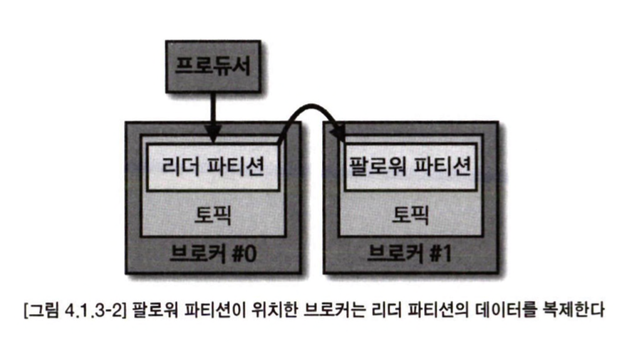우에는 최소한 브로커가 3대 이상 실행 중이여야 3개의 복제본(리더 파티션 1, 팔로워 파티션
