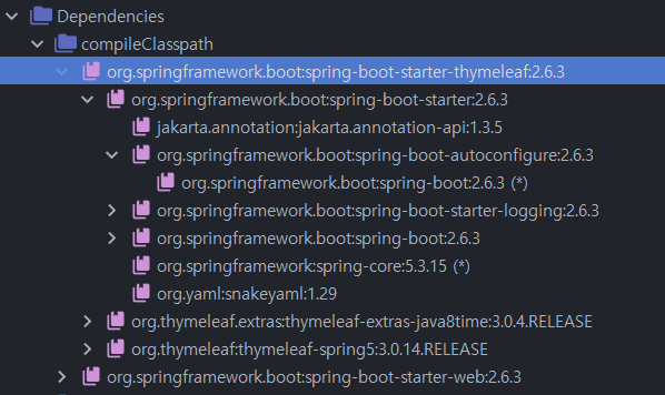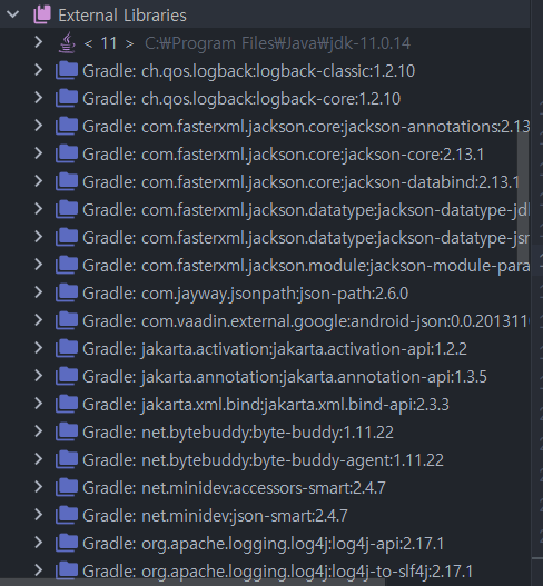 - 우리가 라이브러리를 2개만 추가했지만 추가한 라이브러리와 의존관계들을 자동으로 추가해준다