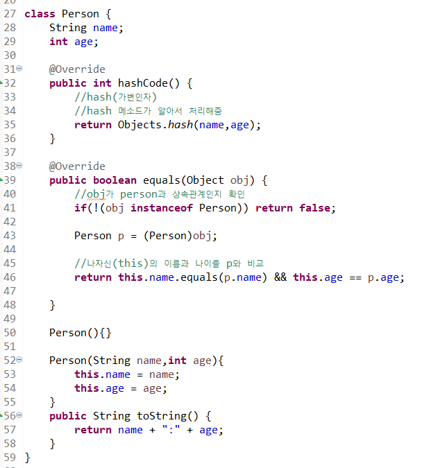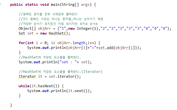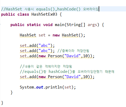 - boolean add(Object o) 는 저장할 객체의 equals()와 hashCode()를 호출한다 equals(),hashCode()가 오버라이딩 되어 있어야 함