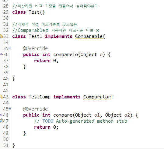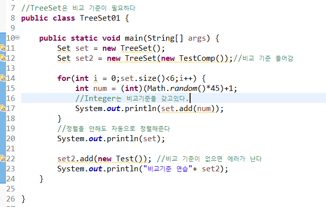 - TreeSet(Comparator comp) : (정렬기준) 으로 정렬하는 TreeSet생성
