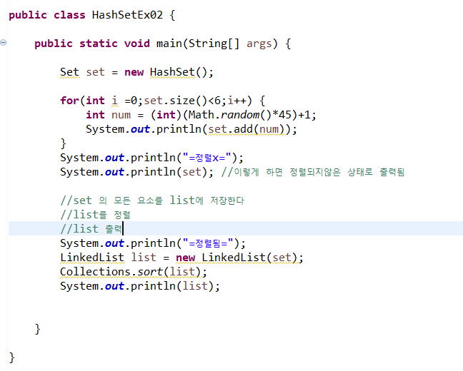 - 순서를 유지하려면 LinkedHashSet클래스를 사용