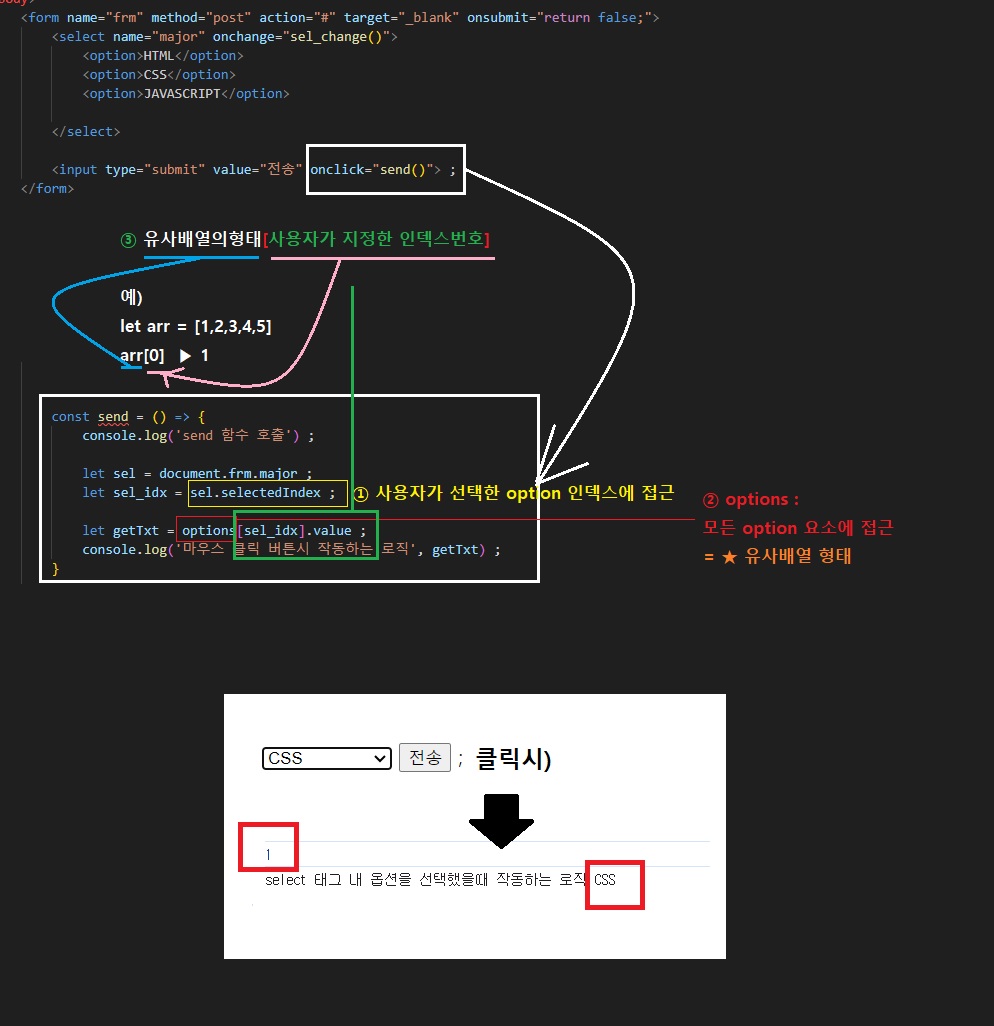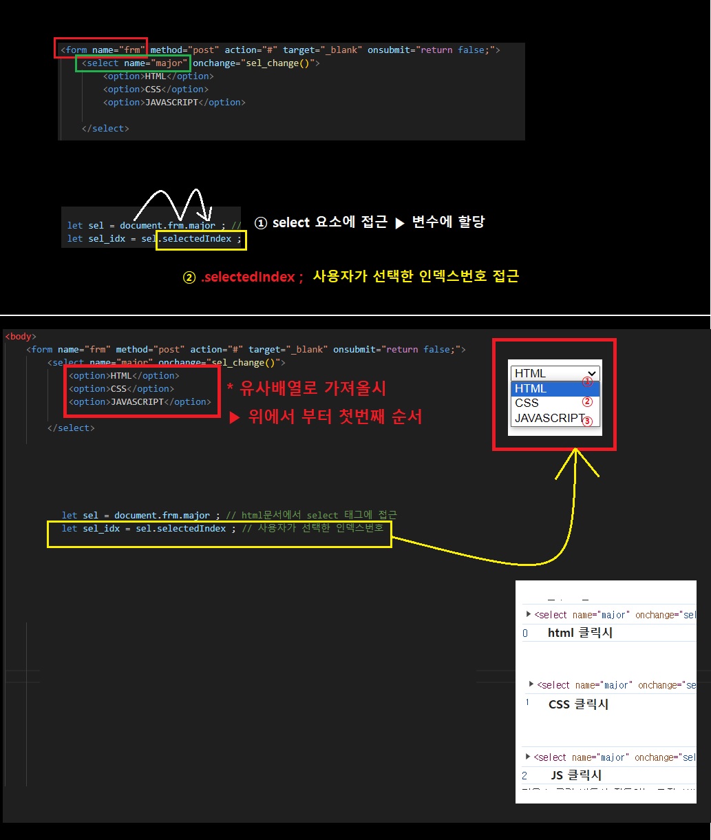 👉 documents.form이름.select이름.selectedIndex