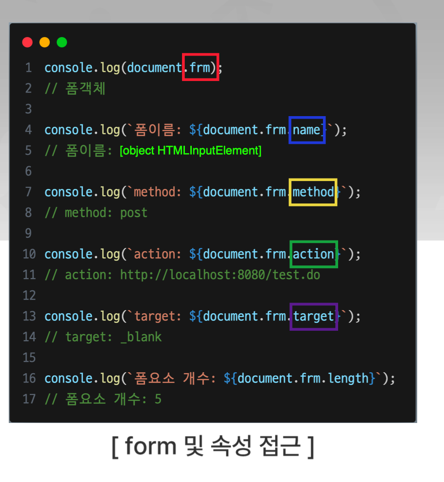 🔵 document 안에 👉 form 태그