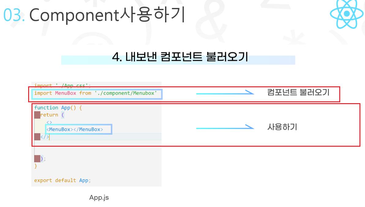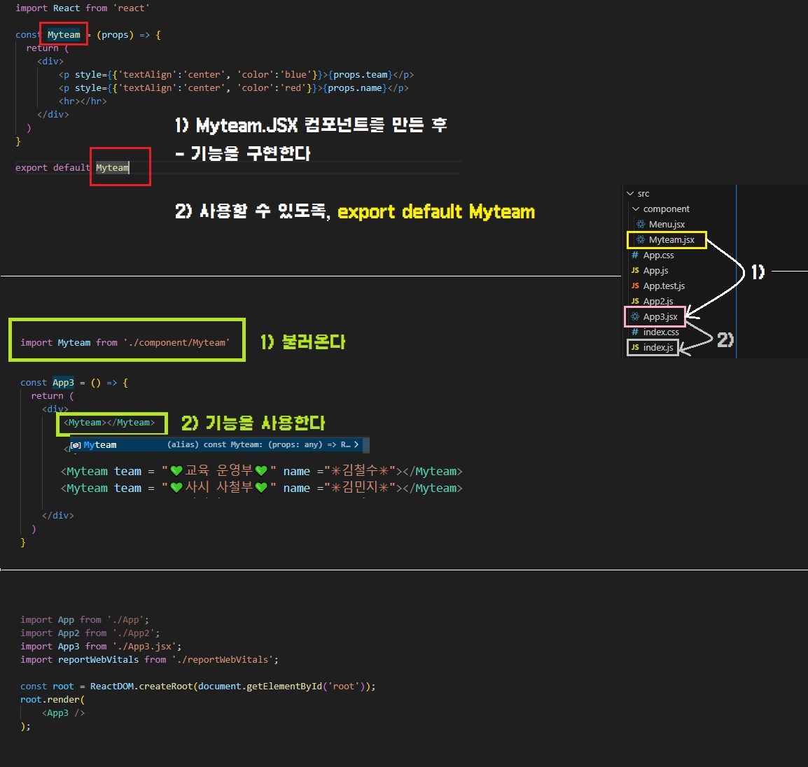 1) 상위 컴포넌트에서 가져올 기능(하위 컴포넌트)을 import 호출