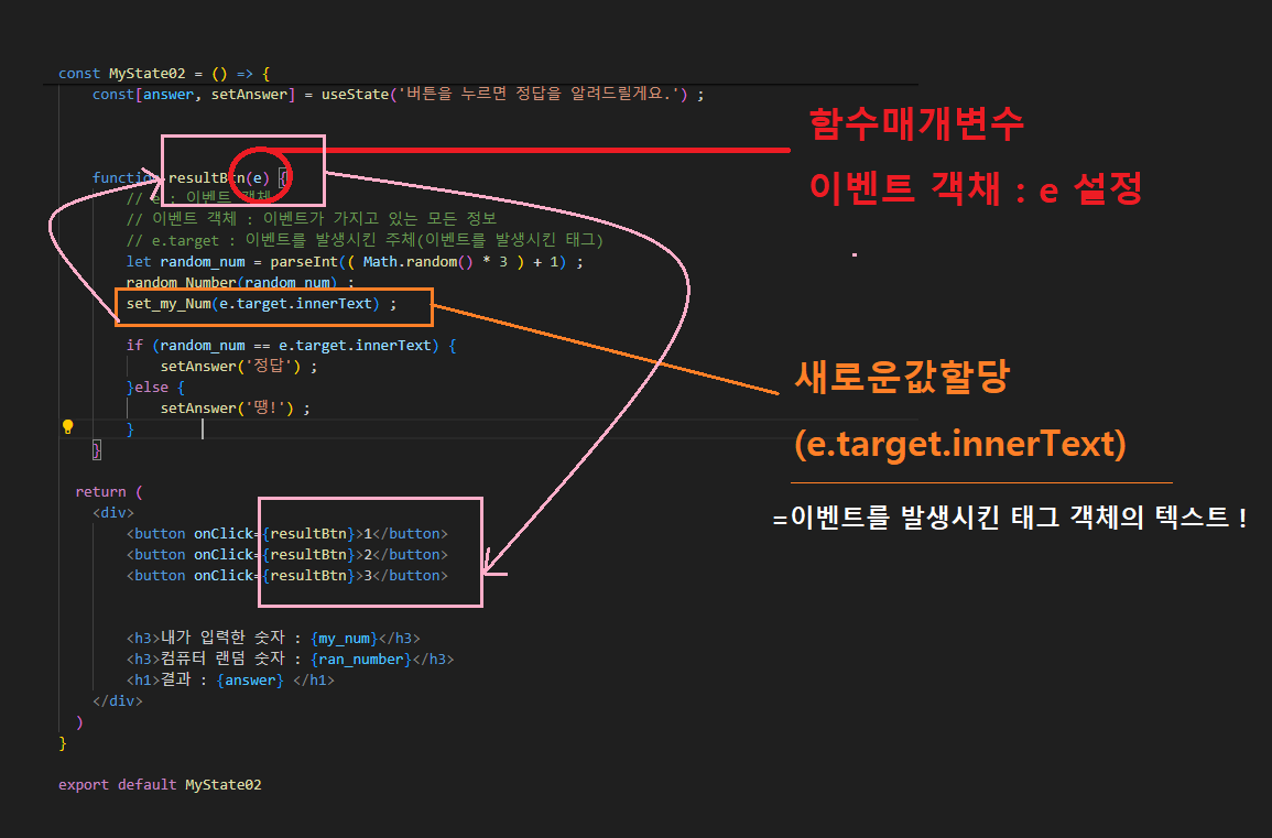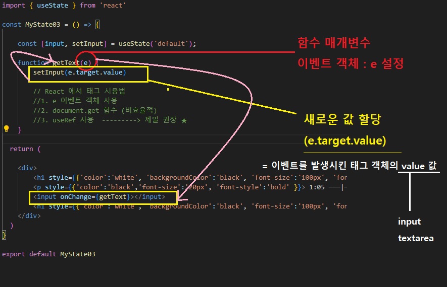 case2) e.target.value : 이벤트 발생시킨 태그 객체의 value(input,textarea..) 값 할당