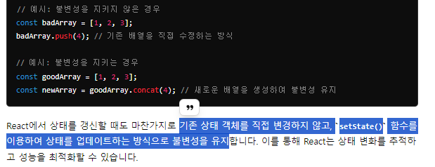 상태를 변경할 때, 이전 상태를 '직접 수정 하지 않고'