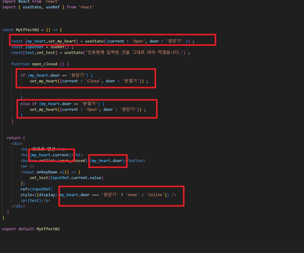 🟥 빨간박스 : 버튼 눌렀을때 useState hook으로 변경 값 갱신