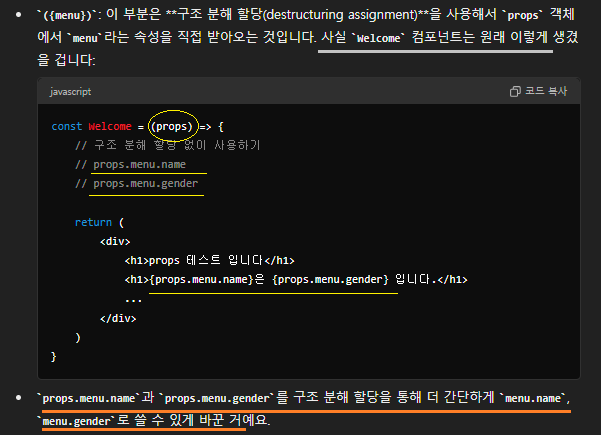 - 구조 분해 할당을 통해서, menu 속성을 직접 받아옴