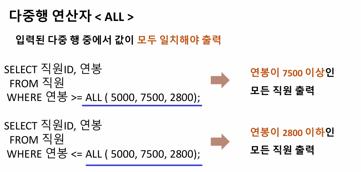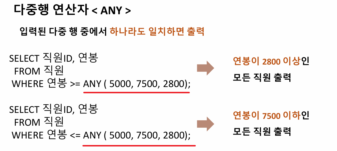 //NULL 값은 비교 연산 불가함 , BUT 정렬시, NULL값을 가장 큰 값으로 인식함 !!!!