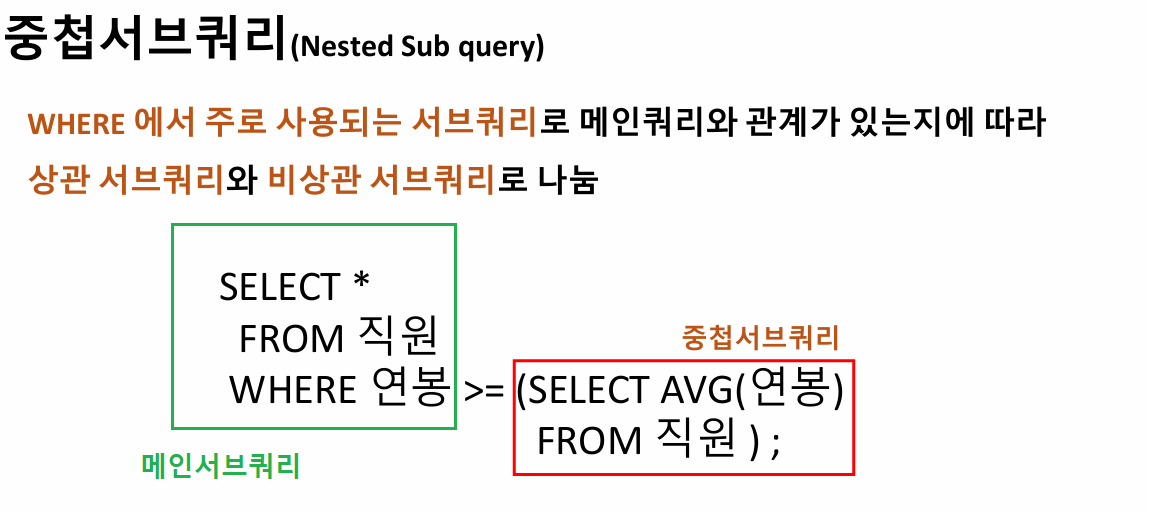 SQL문을 또 다른 SQL문의 부분에 넣는 것