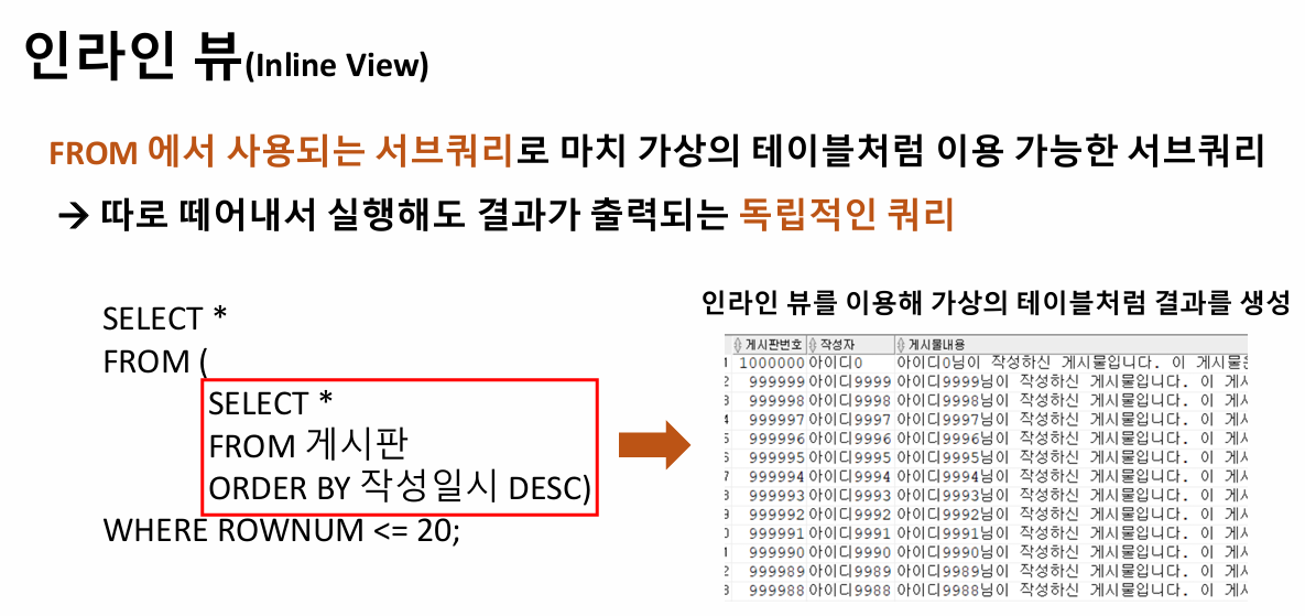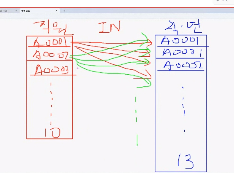 - 서브쿼리 : 자주 쓸 경우, 성능이 좋다