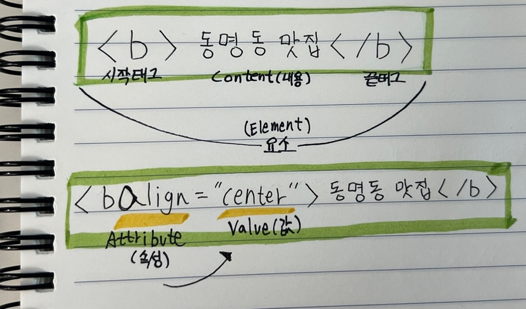 - 시작태그에 속성이 들어가고, 속성에 값이 있어야 한다.