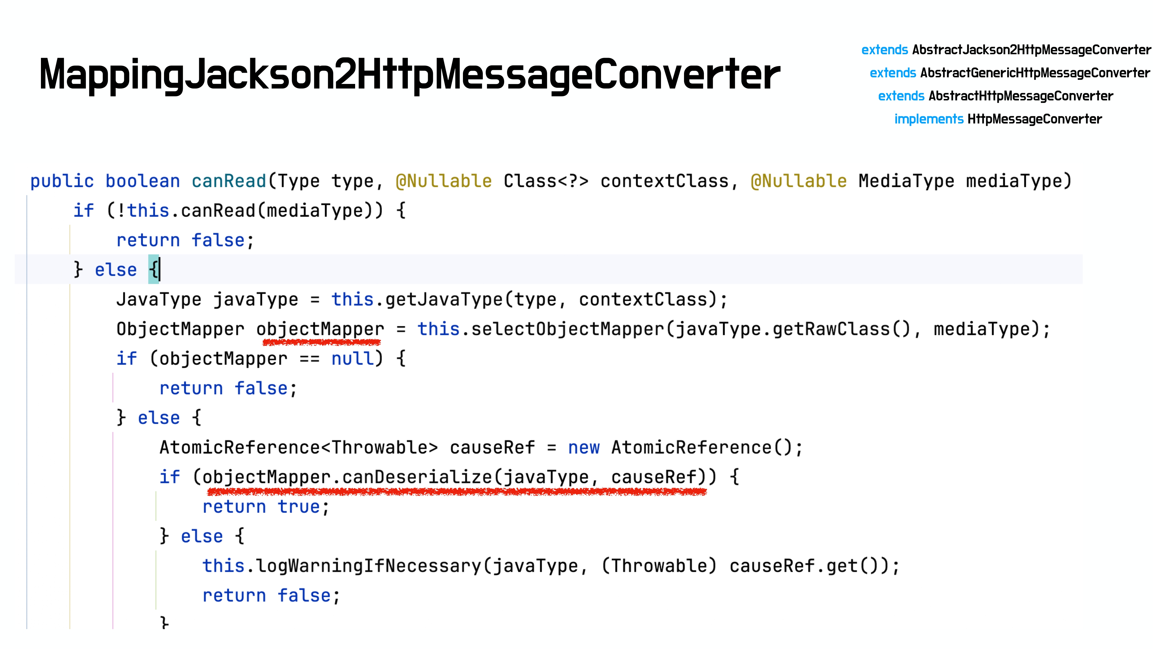 실제로 canRean() 구현 안에서도 ObjectMapper를 사용하고 있는 점을 확인할 수 있다.