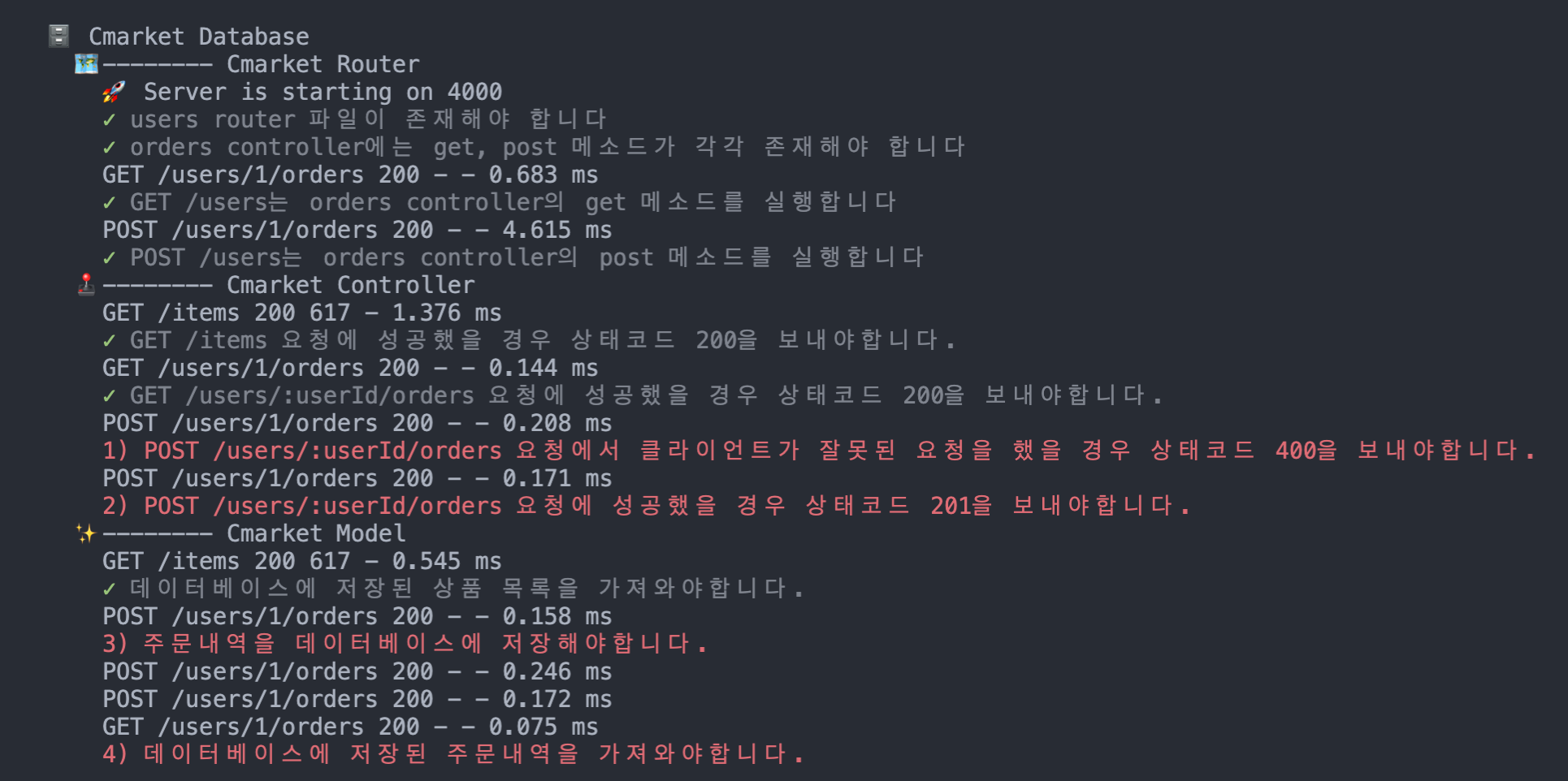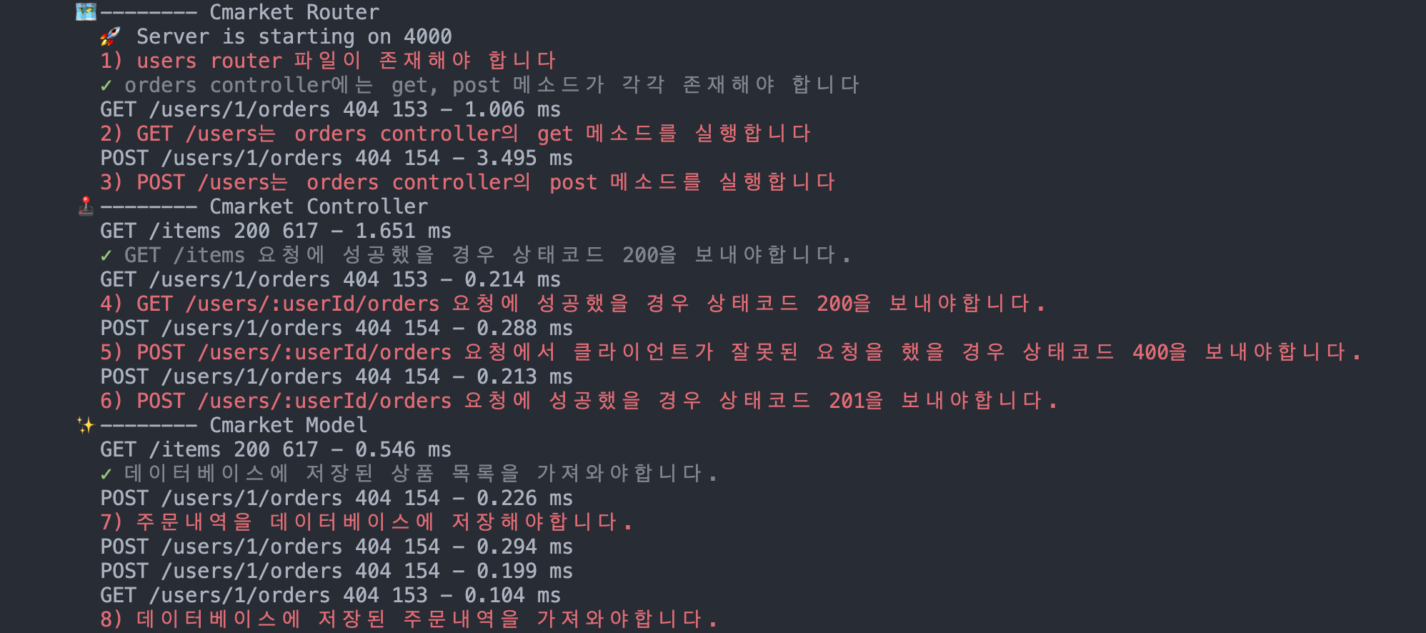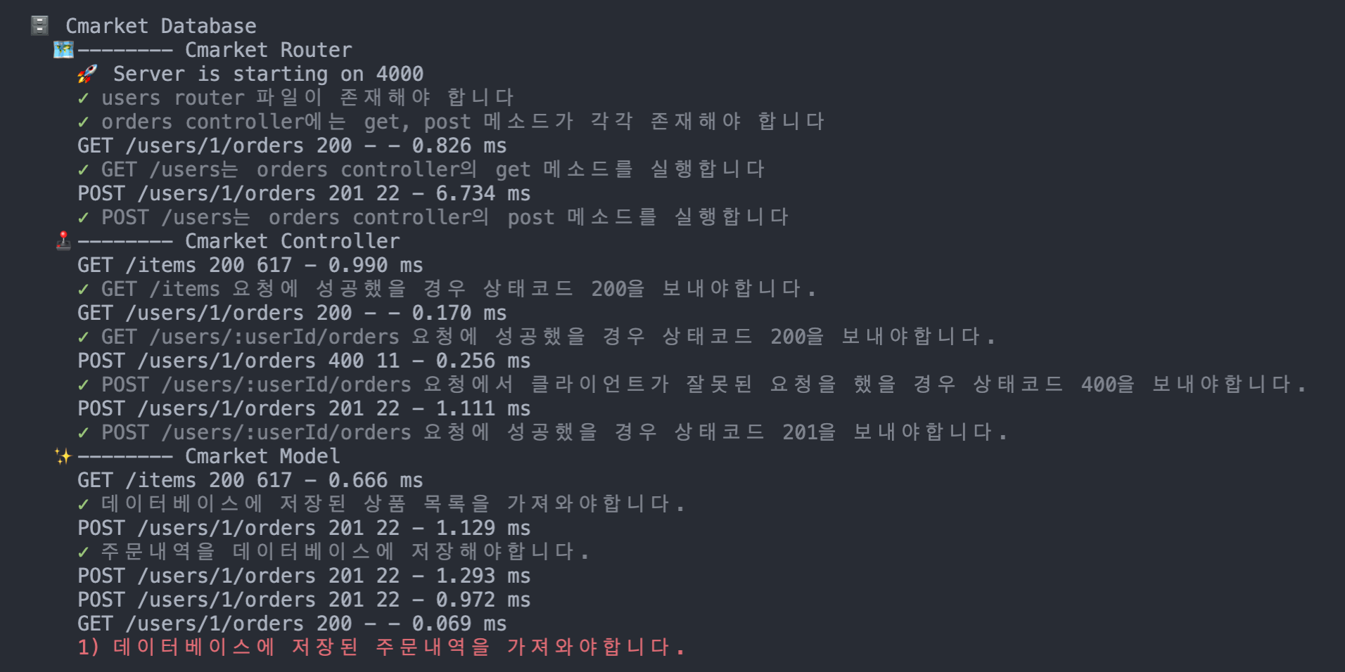 1) POST /users/:userId/orders 요청에서 클라이언트가 잘못된 요청을 했을 경우 상태코드 400을 보내야합니다.