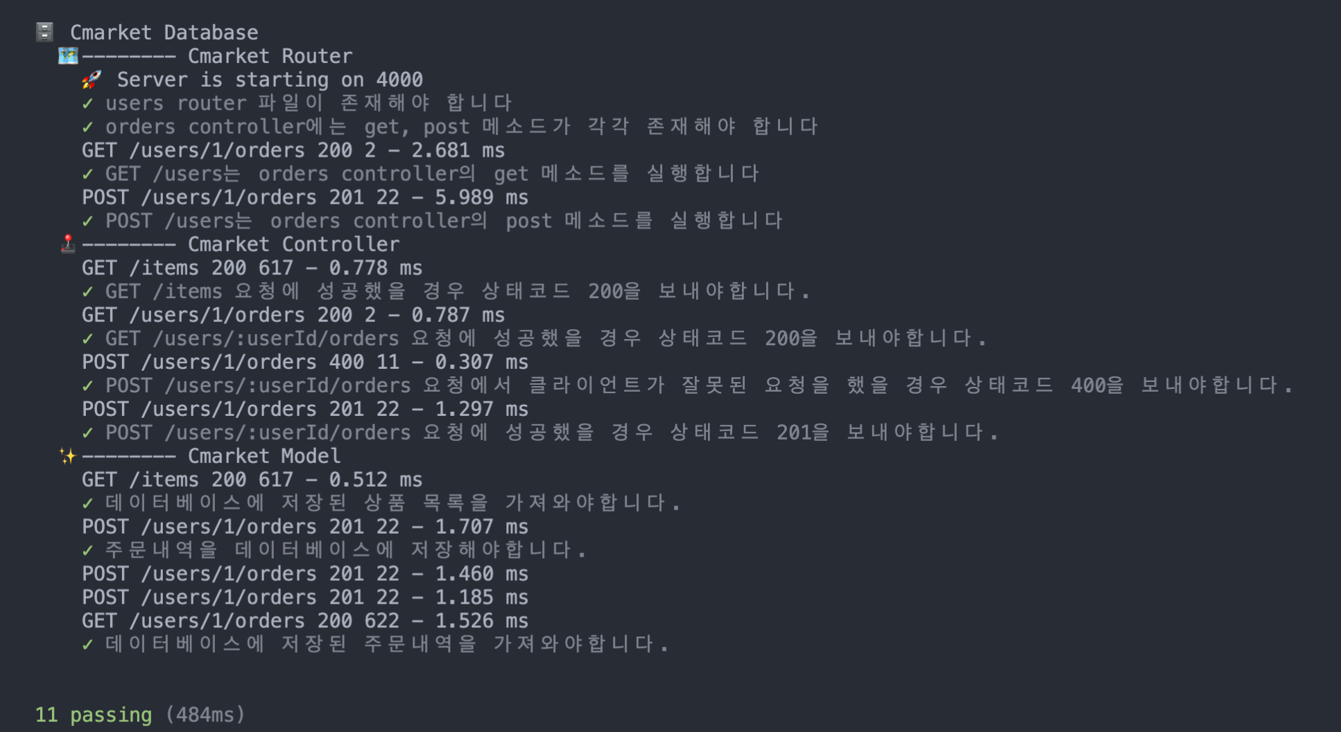 npm test 입력 시 자동으로 서버가 실행되고 테스트가 진행됩니다.