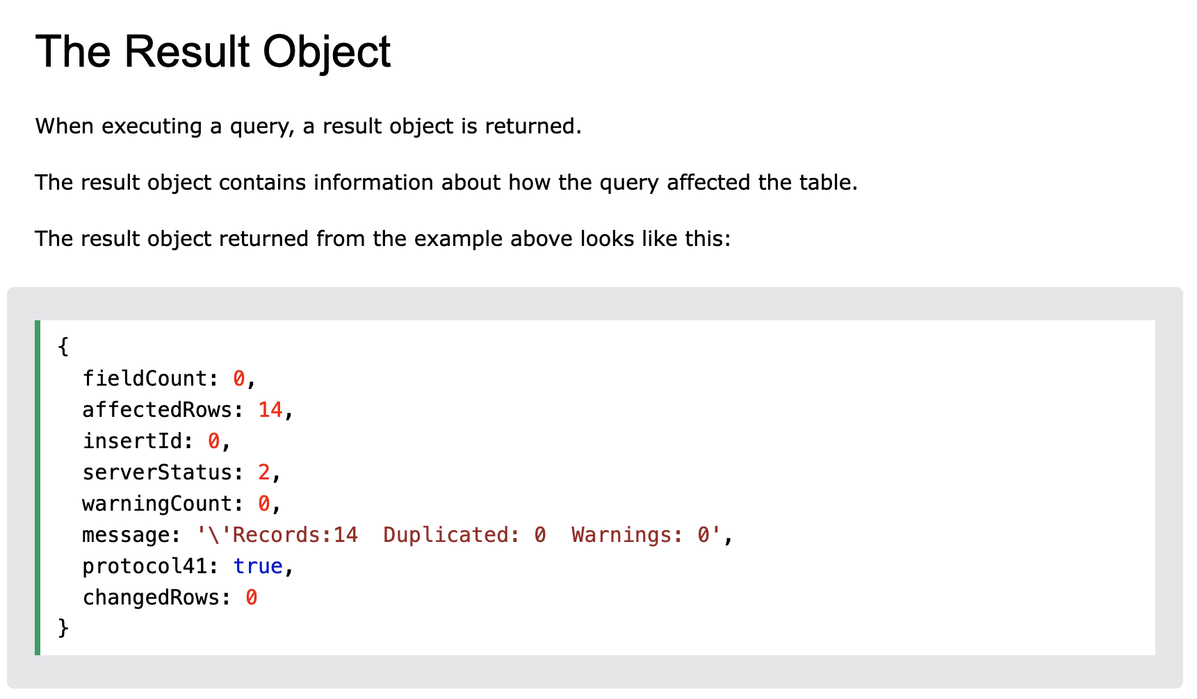 위의 링크로 가면 insert Into를 사용했을때 리턴하는 객체에 대해서 정의해 주고 있고 여기서 insertId를 사용하면 id 값을 받아 올 수 있다