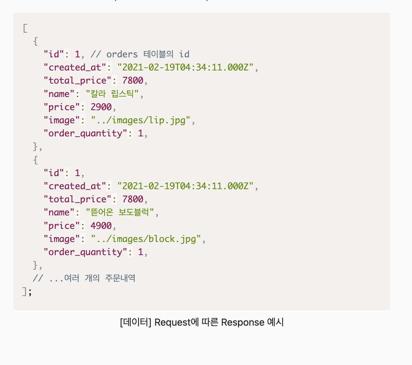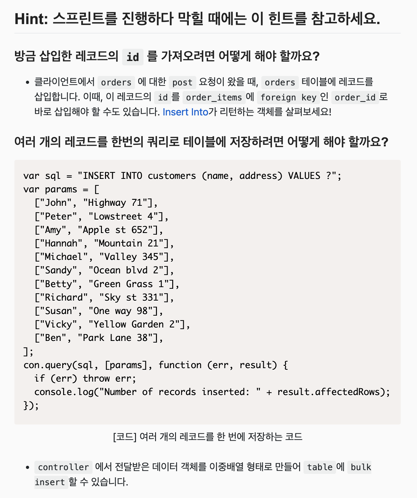 (하나만 살 수도 있고 여러개를 살 수 있기 때문에 요청들어온 아이템 내역을 하나하나 insert into를 실행해도 되겠지만 배열로 묶은 벌크 단위로 데이터를 보내서 한번의 쿼리로 실행할 수 있도록 하면 더 좋다)