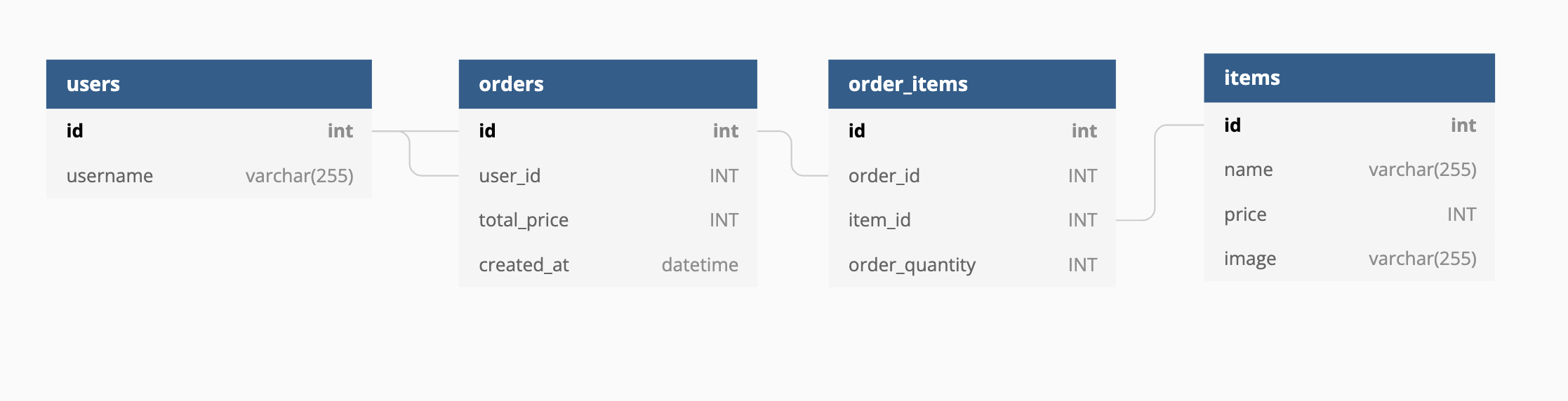 const queryString = `SELECT orders.id, orders.created_at, orders.total_price, items.name, items.price, items.image, order_items.order_quantity FROM items